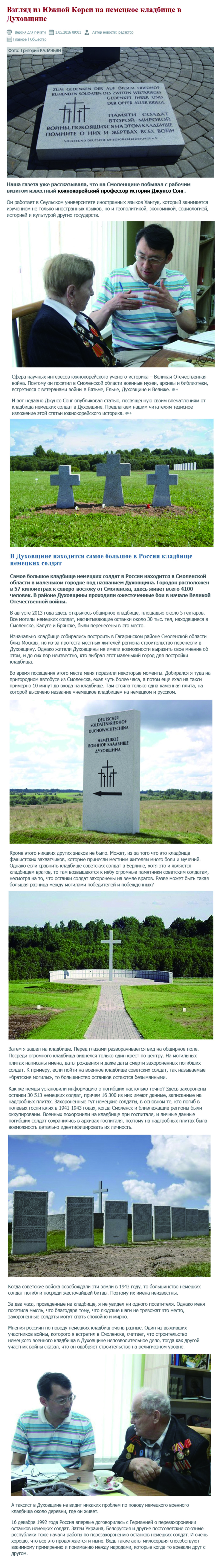[언론보도] Взгляд из Южной Кореи на немецкое кладбище в Духовщине