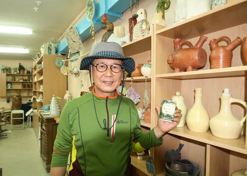Сындо Ра посетил мастерскую «ARTель» и в качестве сувенира выбрал «карандашницу» в форме томика стихов Бориса Пастернака и вазу с лиственницами Морозовского парка.