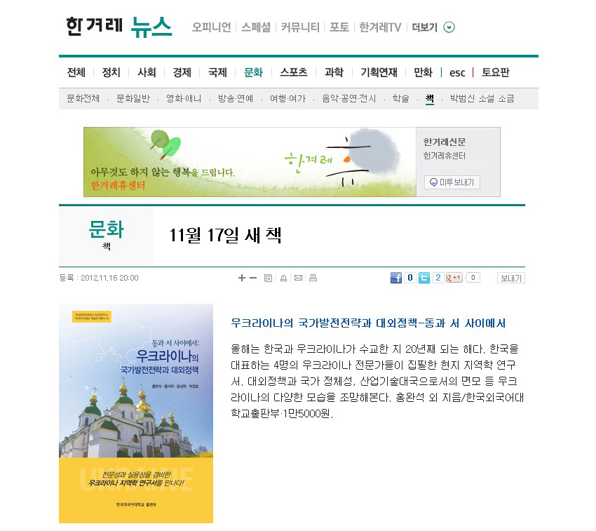 [언론보도][홍완석] 11월 17일의 새 책 - 한겨레 뉴스 (2012.11.16)