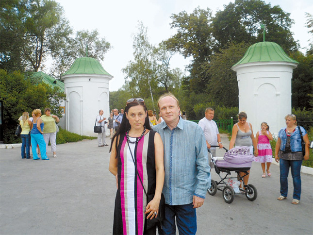 지난 7월 7일 야스나야 폴랴나의 톨스토이 영지 앞에서 전 톨스토이박물관 관장인 블라디미르가 부인 에카테리나(현 관장)와 포즈를 취했다. 야스나야 폴랴나=안성규 CIS순회 특파원