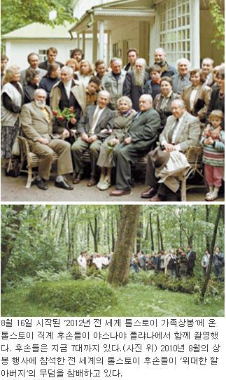 1910년 톨스토이가 사망한 뒤 102년이 지난 지금 전 세계에는 7대에 걸쳐 377명의 후손이 태어나고 죽었다(톨스토이 박물관의 웹사이트 기준). 1917년 혁명은 톨스토이의 자식 한 명만 빼고 모두를 러시아에서 몰아냈다. 그들과 그들의 자식들은 20여 개 나라에서 힘겹게 타향살이를 이어갔다. 냉전의 한기에 서로 만날 엄두도 못 냈고 ‘위대한 할아버지’를 기리려 야스나야 폴랴나까지 오기란 거의 불가능했다. 옛 소련이 붕괴해도 움츠러든 마음은 펴지지 않았다. 그러다 톨스토이 박물관 관장인 블라디미르 톨스토이(50)가 큰 구상을 했다. 톨스토이 5대손으로, 언론인을 거쳐 1994년 8월부터 박물관 관장을 맡고 있던 그는 ‘가문의 흔들림’을 걱정했다.