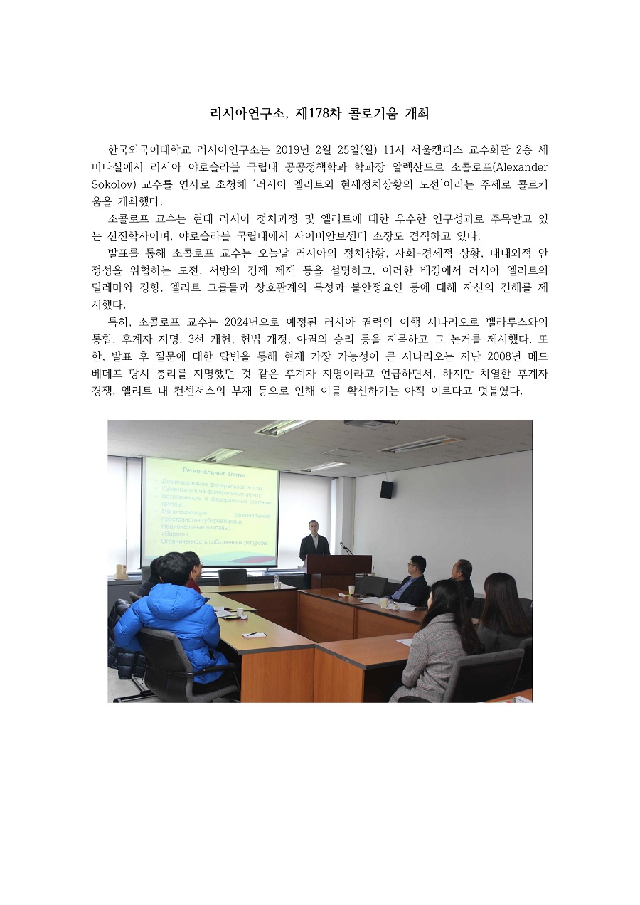 제178차 러시아 엘리트와 현재정치상황의 도전