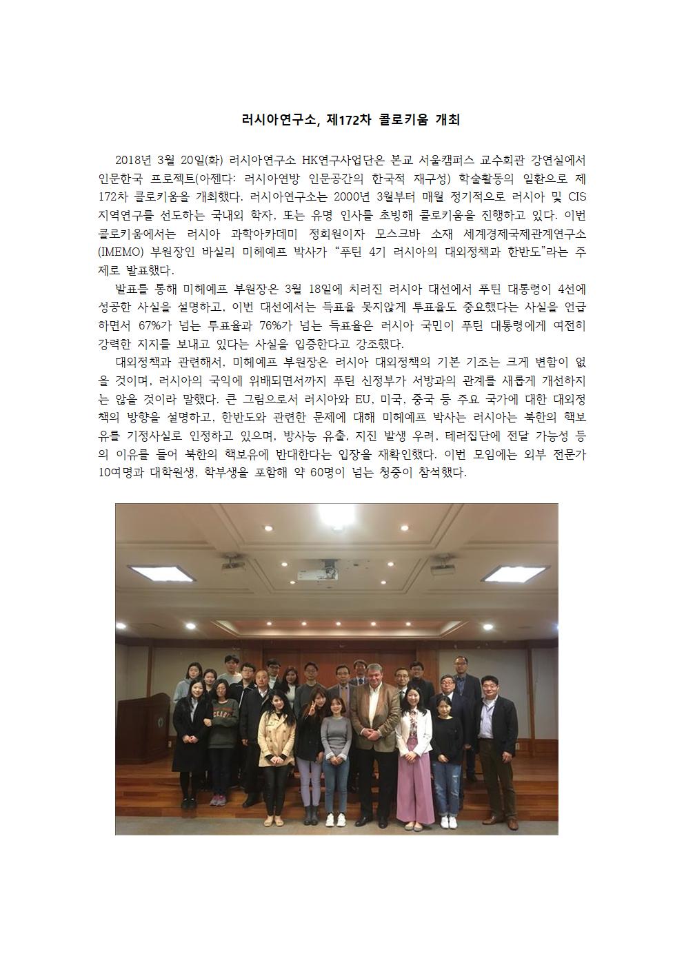 제172차 푸틴 4기 러시아의 대외정책과 한반도