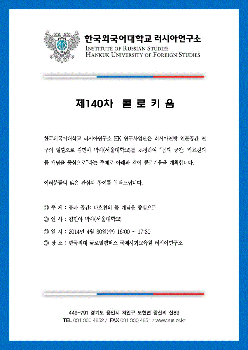 제140차 몸과 공간: 바흐친의 몸 개념을 중심으로