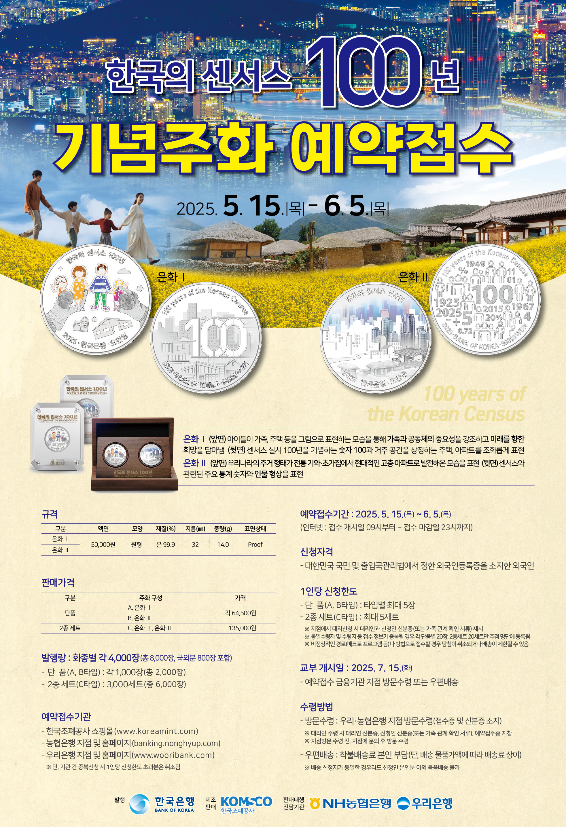 [공지] 2025 인구주택총조사 <한국의 센서스 100년> 기념주화 발행 안내