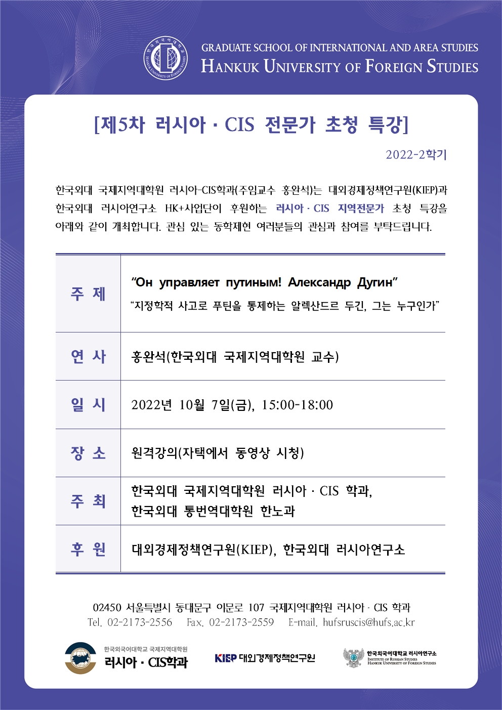 2022학년도 2학기 5차 특강: 지정학적 사고로 푸틴을 통제하는 알렉산드르 두긴, 그는 누구인가