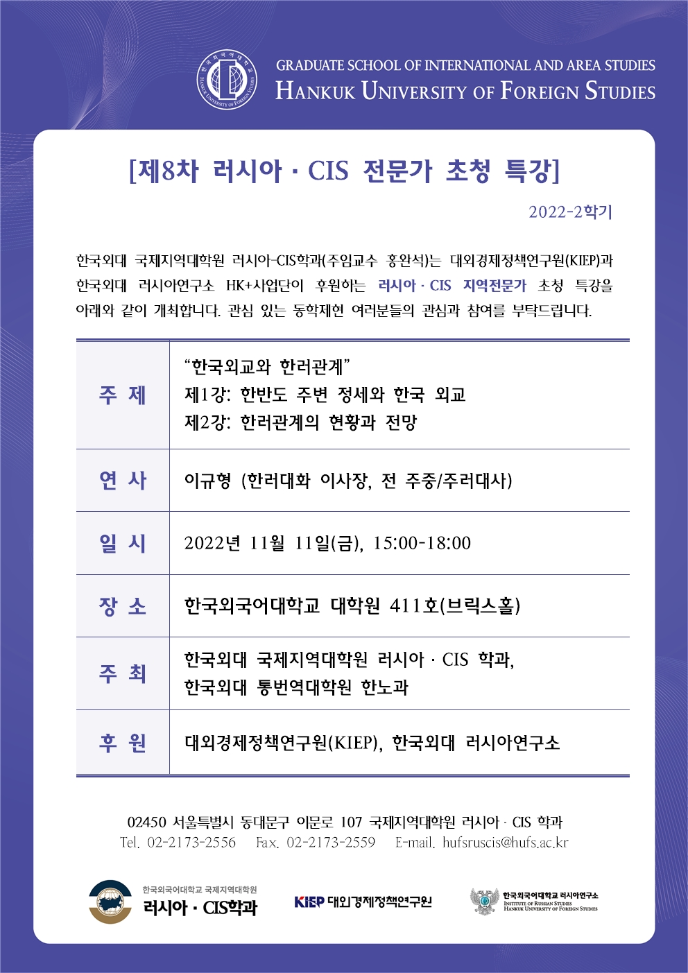 2022학년도 2학기 9차 특강: 한반도 주변 정세와 한국외교/한러관계의 현황과 전망