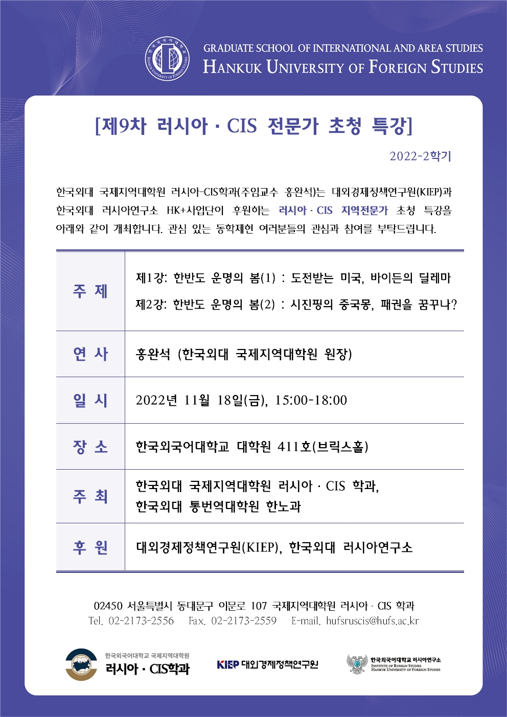 2022학년도 2학기 9차 특강: 한반도 주변 정세와 한국외교/한러관계의 현황과 전망