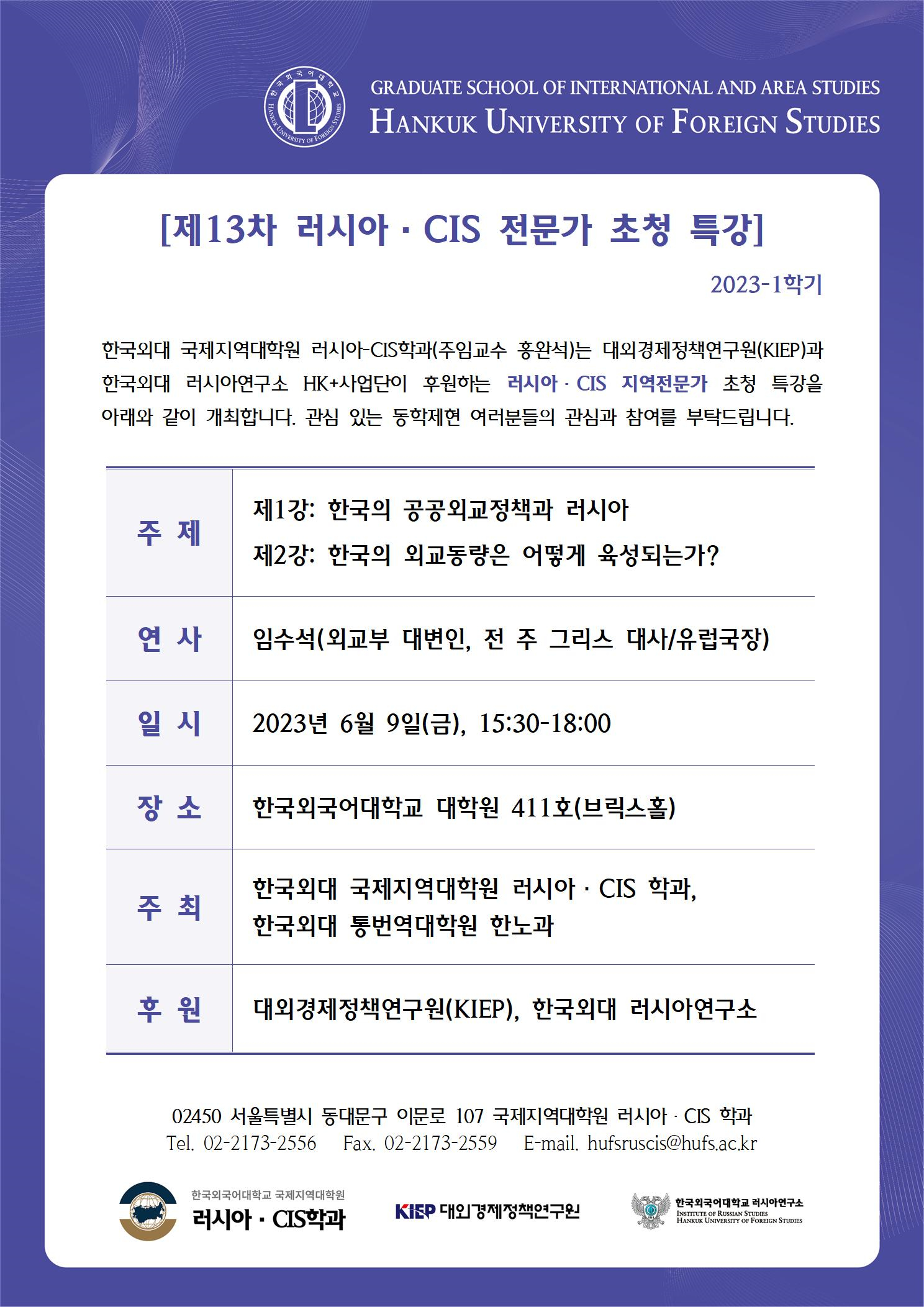 2023학년도 1학기 13차 특강: 한국의 공공외교정책과 러시아/한국의 외교동량은 어떻게 육성되는가?