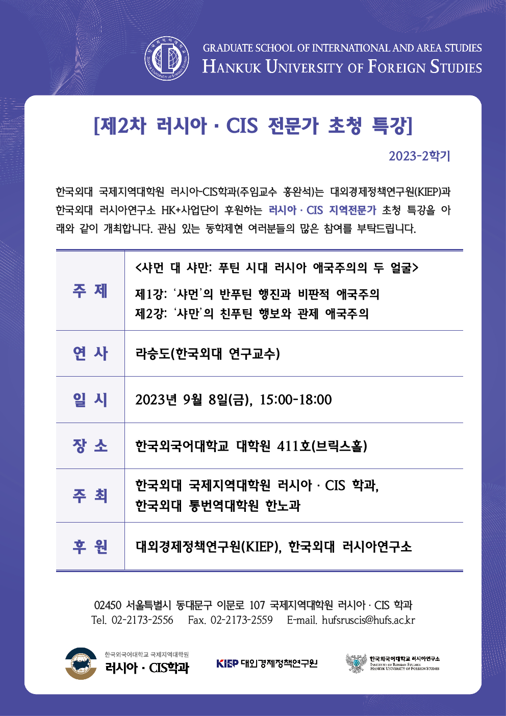 2023학년도 2학기 2차 특강: 샤먼 대 샤만: 푸틴 시대 러시아 애국주의의 두 얼굴
