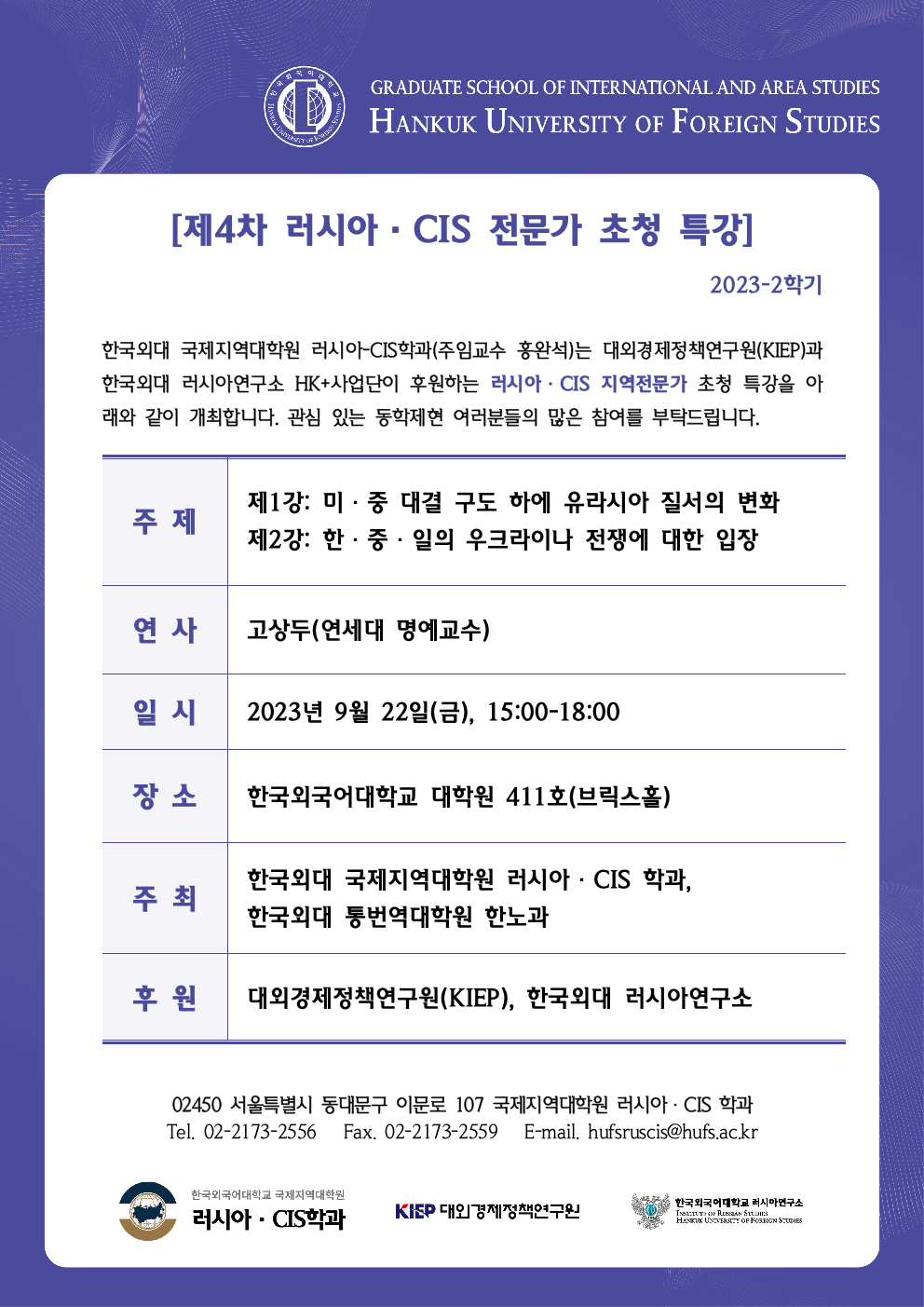 2023학년도 2학기 4차 특강: 미-중 대결 구도 하에 유라시아 질서의 변화/한중일의 우크라이나 전쟁에 대한 입장