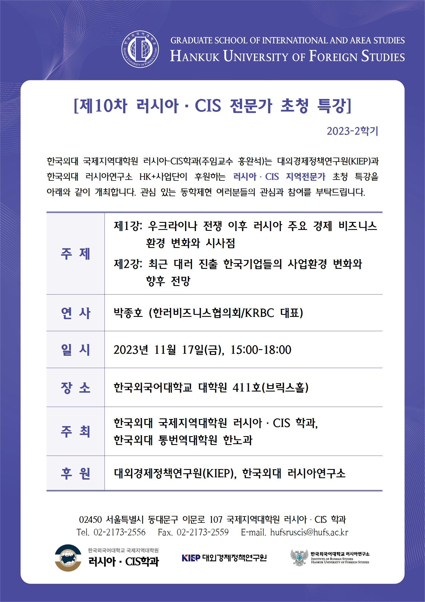 2023학년도 2학기 10차 특강: 우크라이나 전쟁 이후 러시아 주요 경제 비즈니스 환경 변화와 시사점/최근 대러 진출 한국기업들의 사업환경 변화와 향후 전망