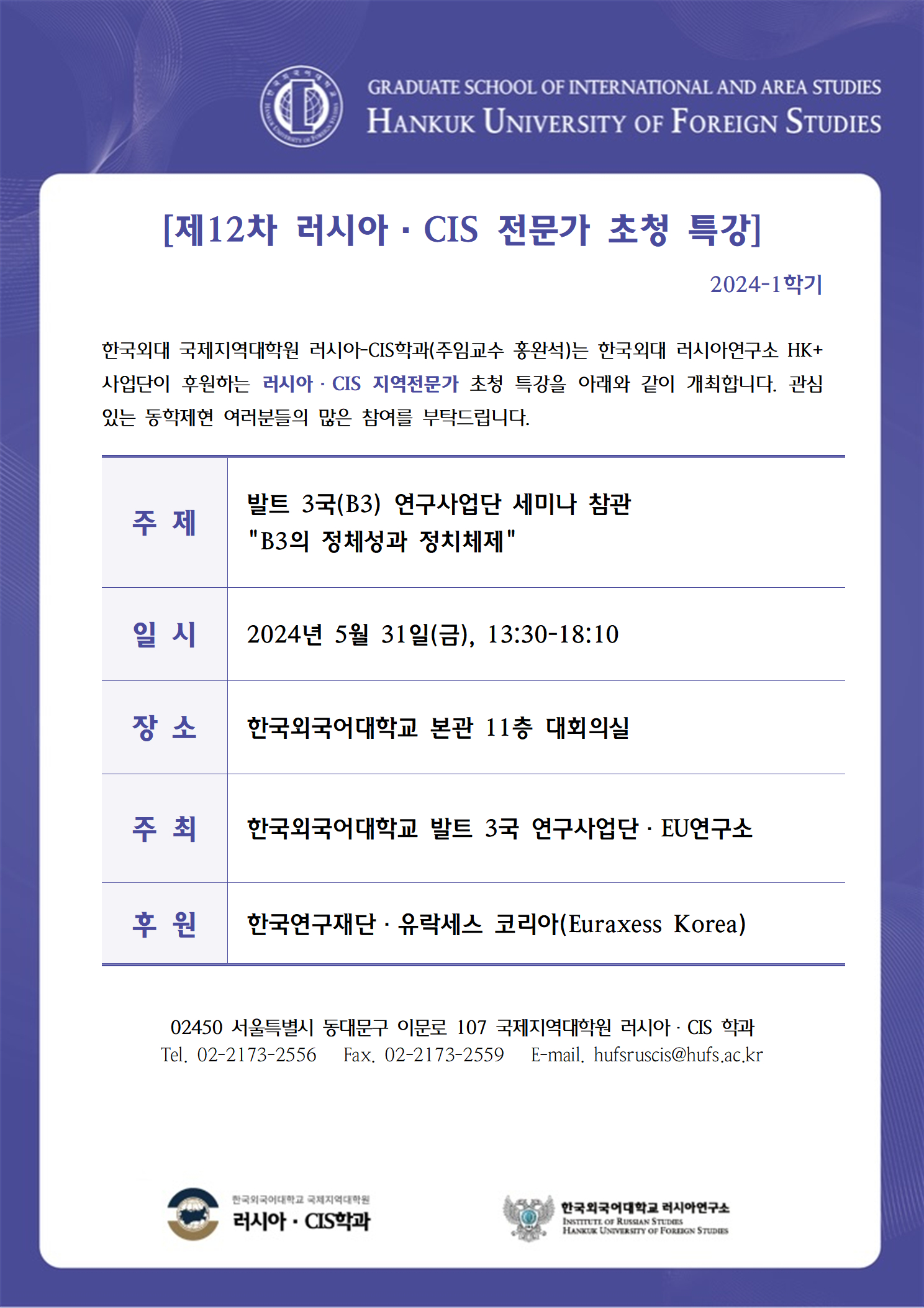2024학년도 1학기 12차 특강: 발트 3국(B3) 연구사업단 세미나 참관 'B3의 정체성과 정치체제'