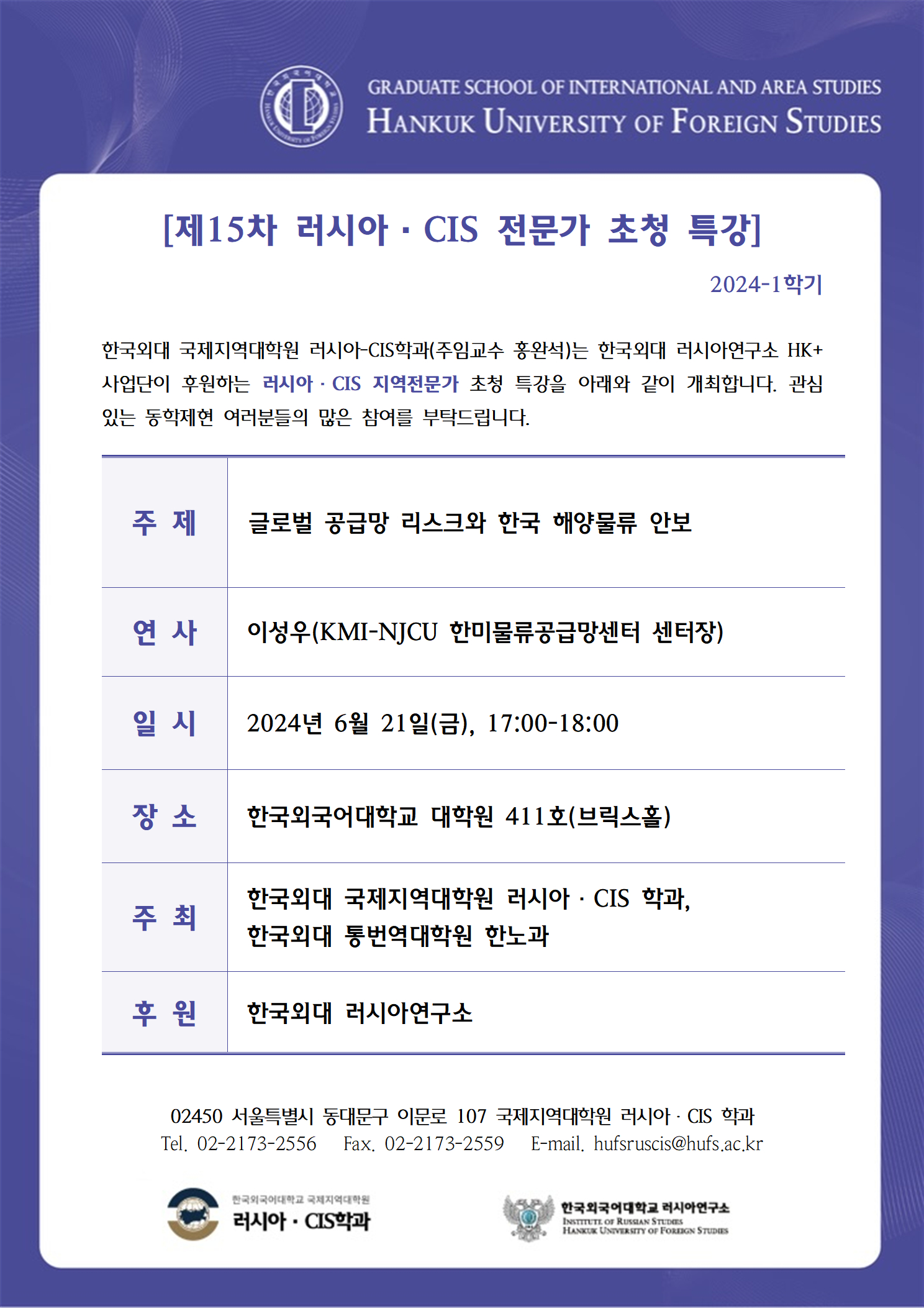 2024학년도 1학기 15차 특강: 글로벌 공급망 리스크와 한국 해양물류 안보
