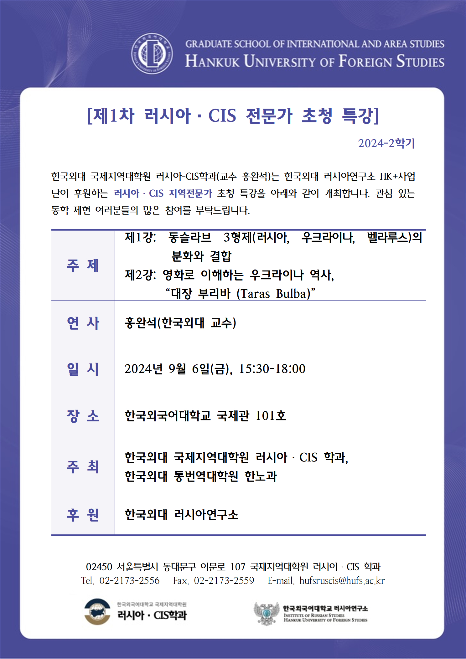 2024학년도 2학기 1차 특강: 동슬라브 3형제(러시아, 우크라이나, 벨라루스)의 분화와 결합/영화로 이해하는 우크라이나 역사, '대장 부리바'