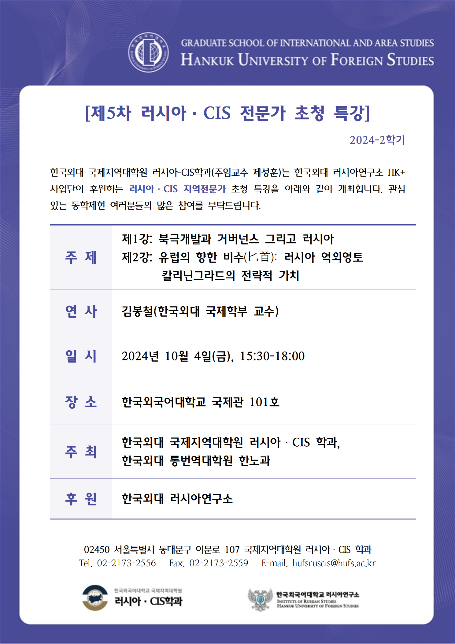 2024학년도 2학기 5차 특강: 북극개발과 거버넌스 그리고 러시아/유럽을 향한 비수: 러시아 역외영토 칼리닌그라드의 전략적 가치