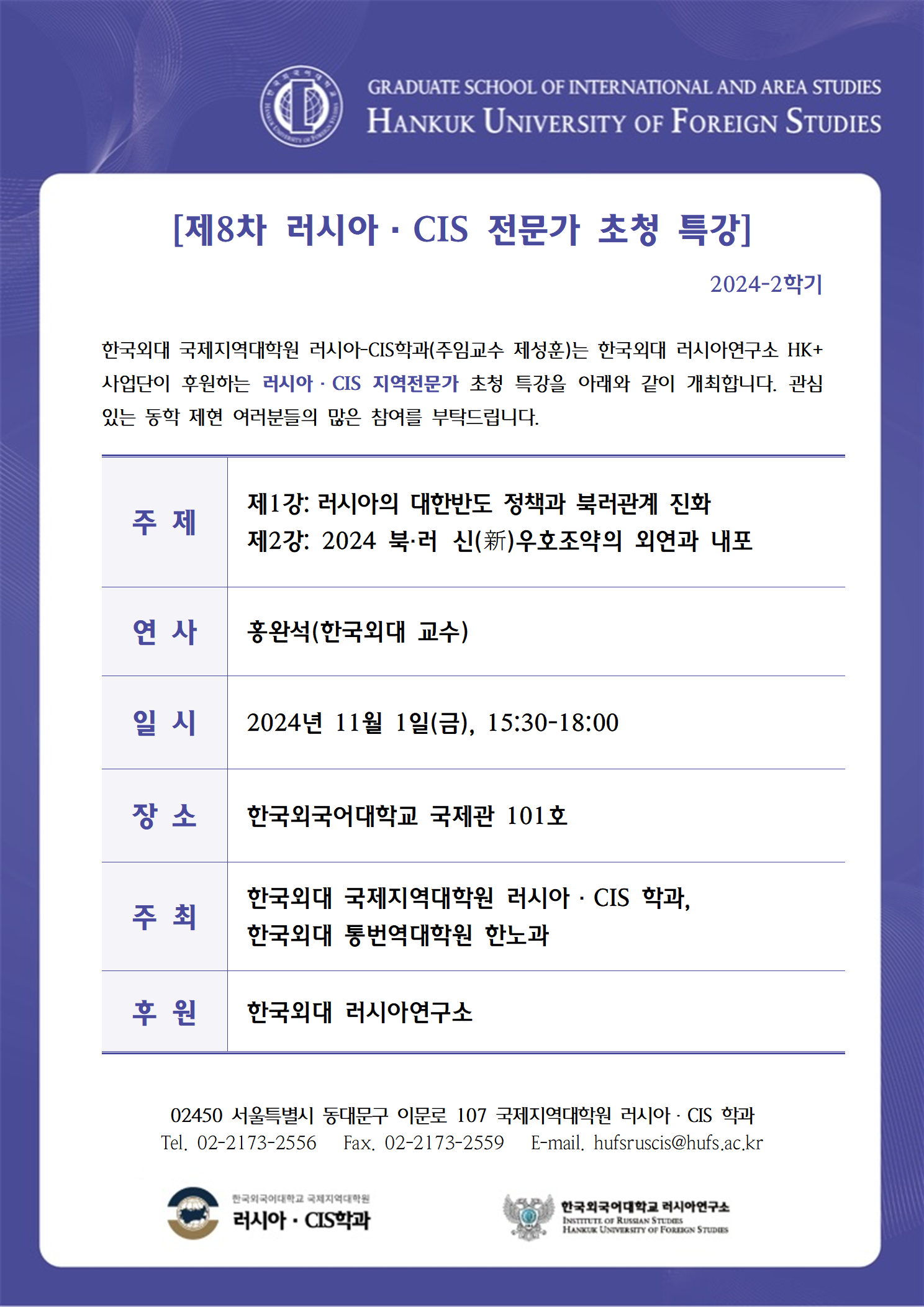 2024학년도 2학기 9차 특강: 북러 관계 강화와 동북아 질서 개편 전망/우크라이나 전쟁 이후 러시아의 대외전략 변화와 올리가르흐