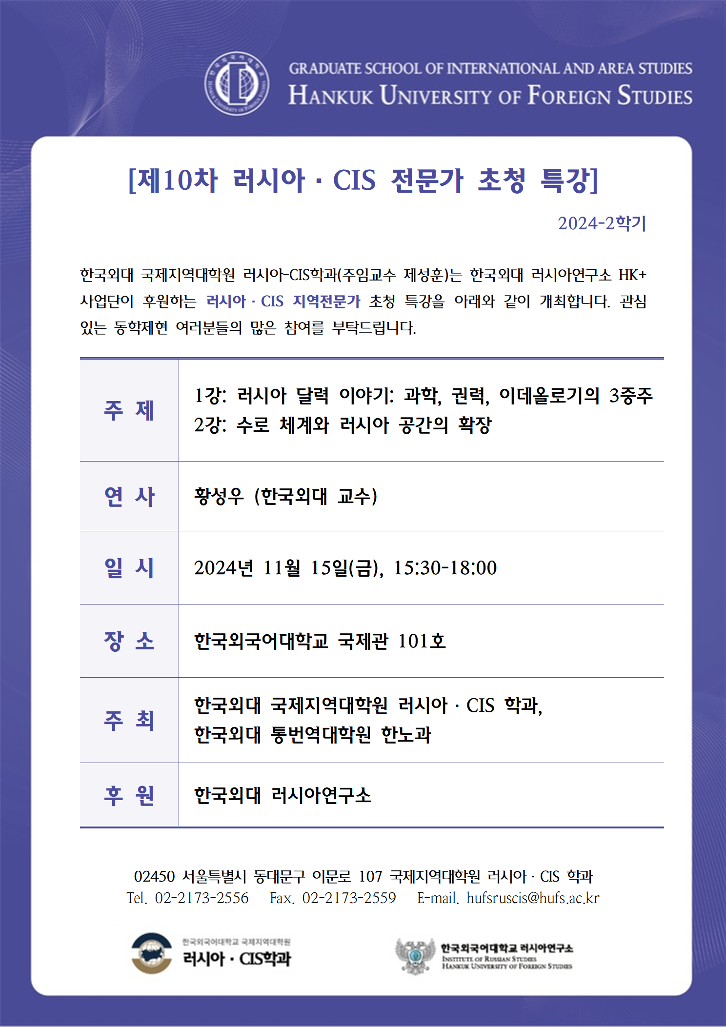 2024학년도 2학기 9차 특강: 북러 관계 강화와 동북아 질서 개편 전망/우크라이나 전쟁 이후 러시아의 대외전략 변화와 올리가르흐
