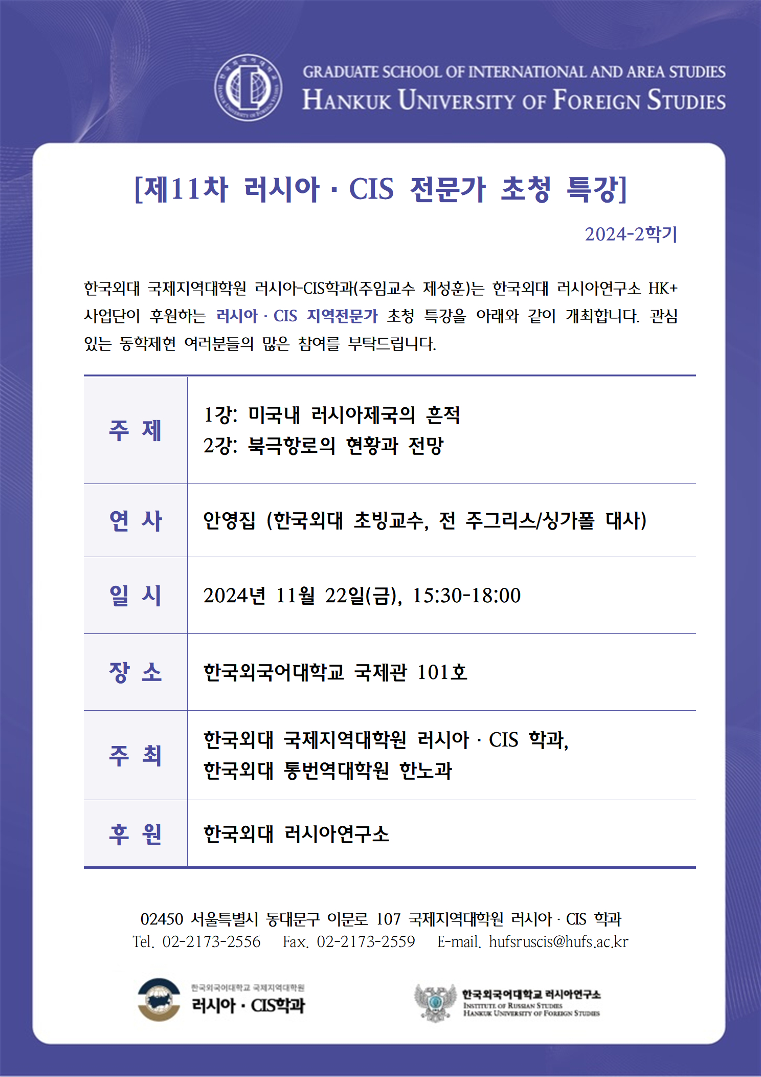 2024학년도 2학기 11차 특강: 미국내 러시아 제국의 흔적/북극항로의 현황과 전망