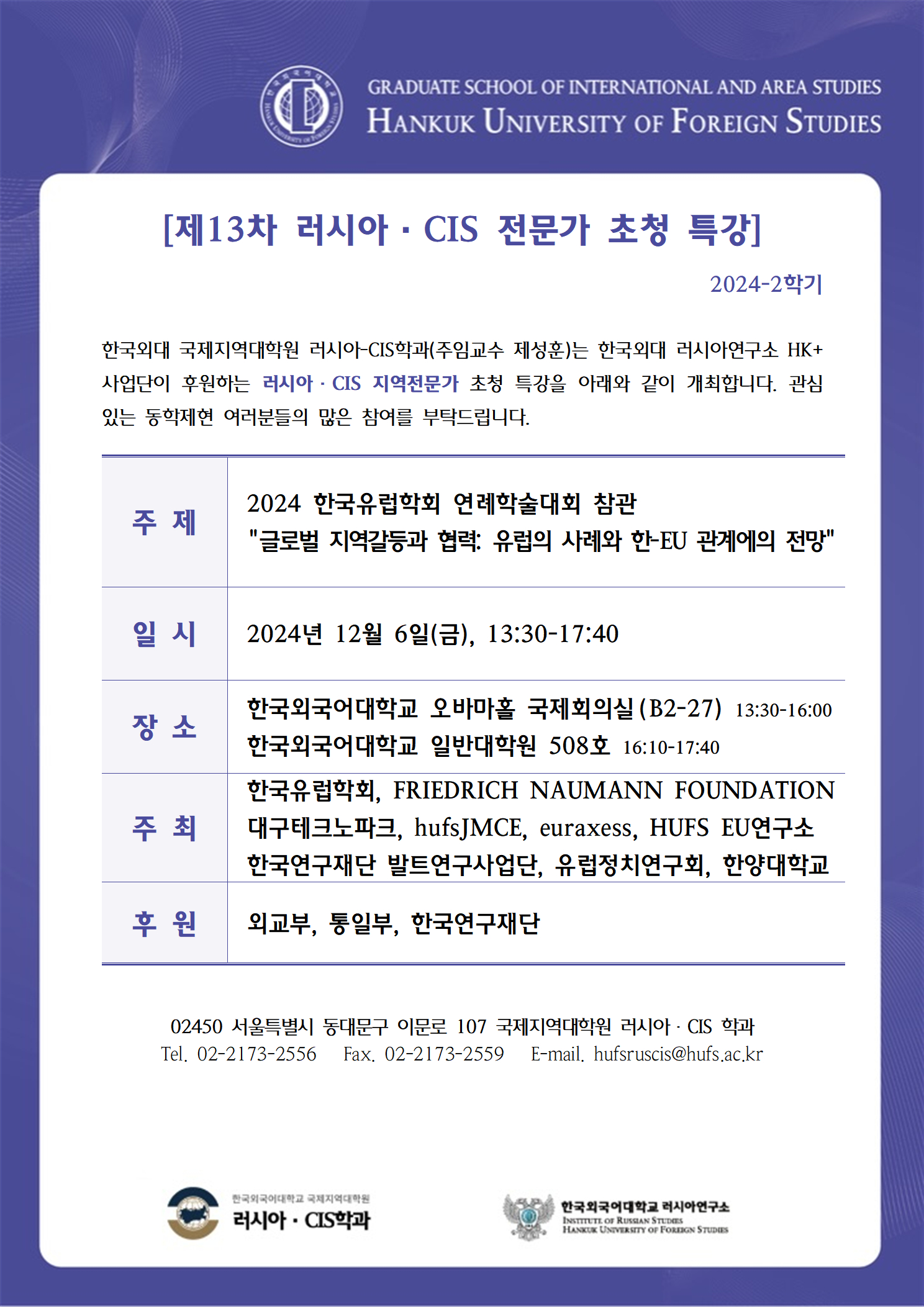 2024학년도 2학기 13차 특강: 2024 한국유럽학회 연례학술대회 참관