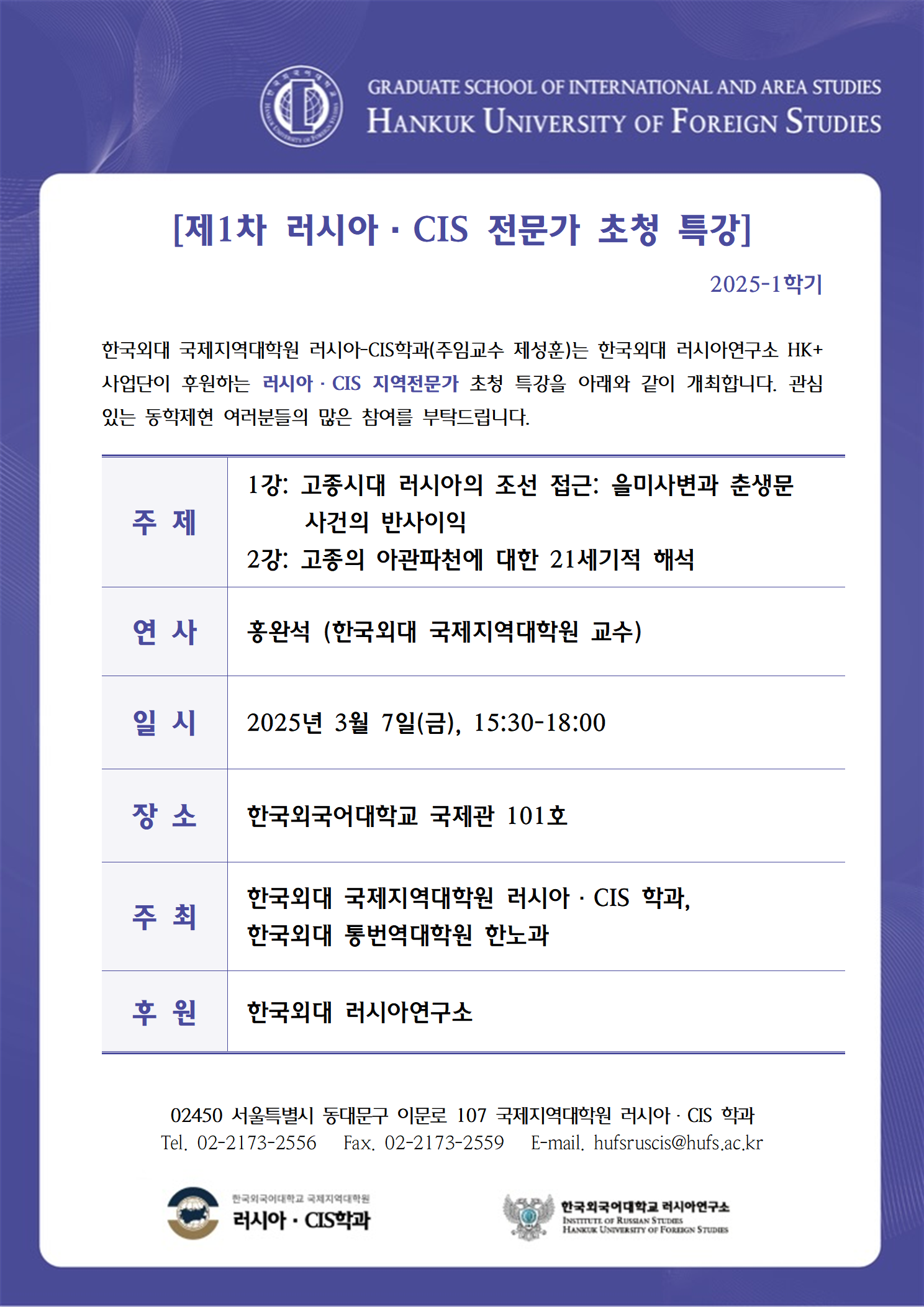 2025학년도 1학기 1차 특강: 고종시대 러시아의 조선 접근: 을미사변과 춘생문사건의 반사이익/고종의 아관파천에 대한 21세기적 해석