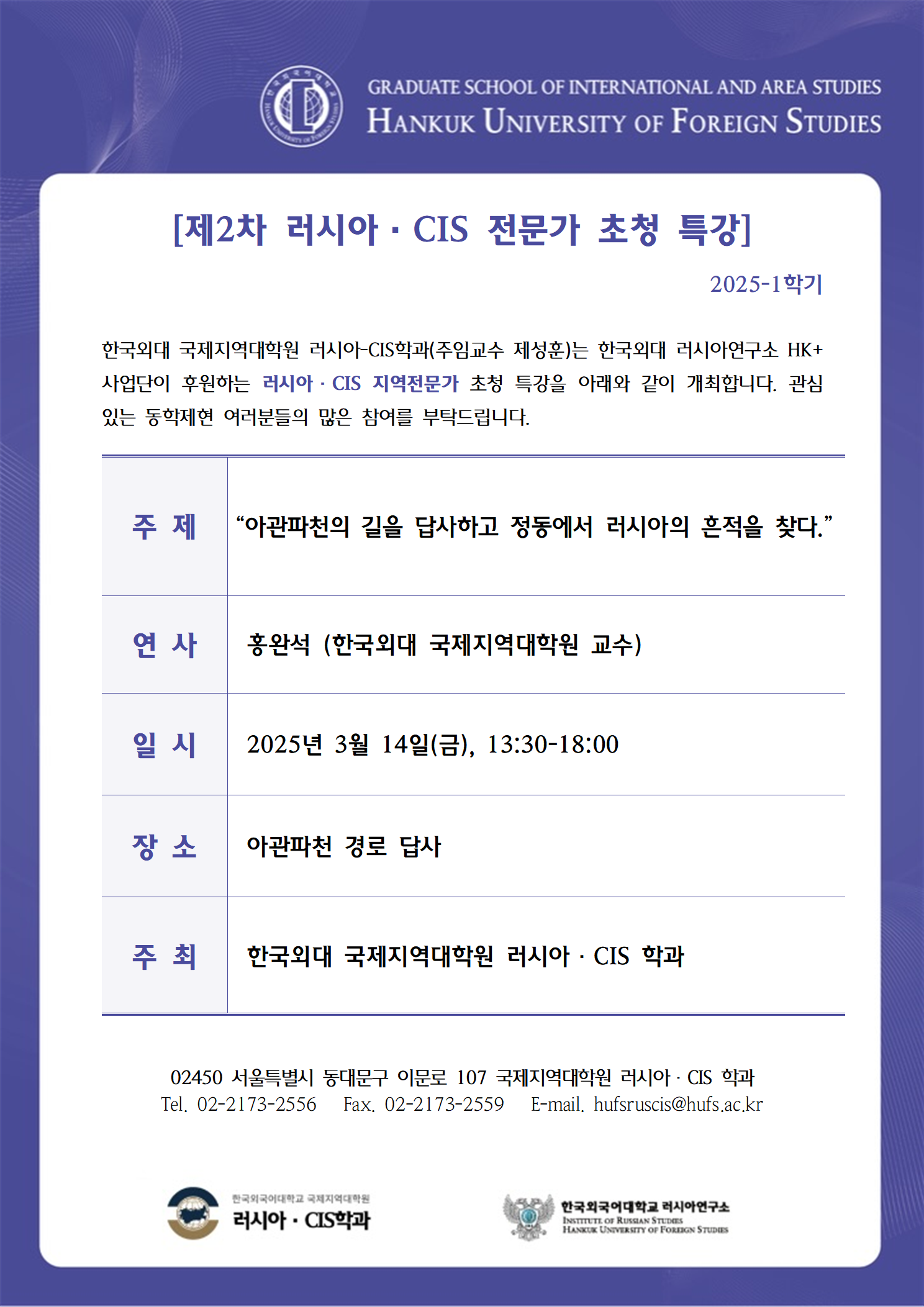 2025학년도 1학기 2차 특강: 아관파천의 길을 답사하고 정동에서 러시아의 흔적을 찾다