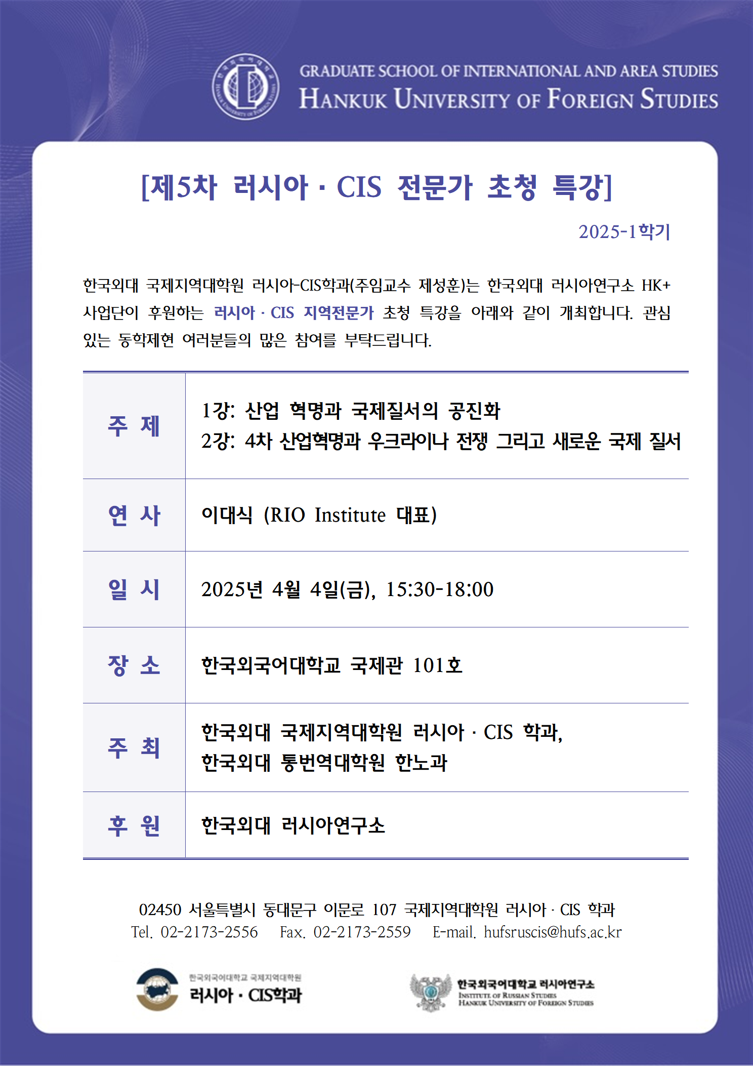 2025학년도 1학기 6차 특강: 역사 속 러시아의 지정학 문제/러시아의 2차 세계대전 경험과 오늘날의 시사점