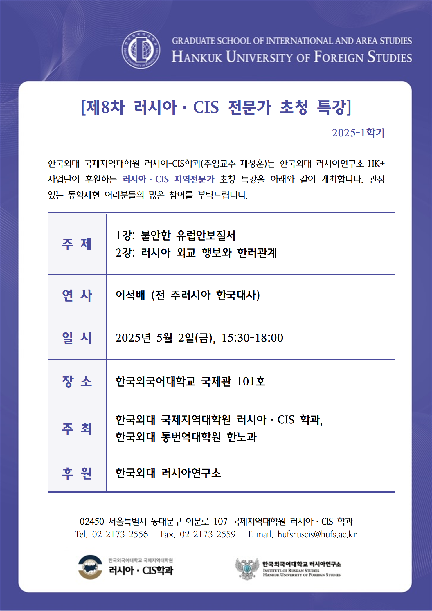2025학년도 1학기 8차 특강: 불안한 유럽안보질서/러시아 외교 행보와 한러관계