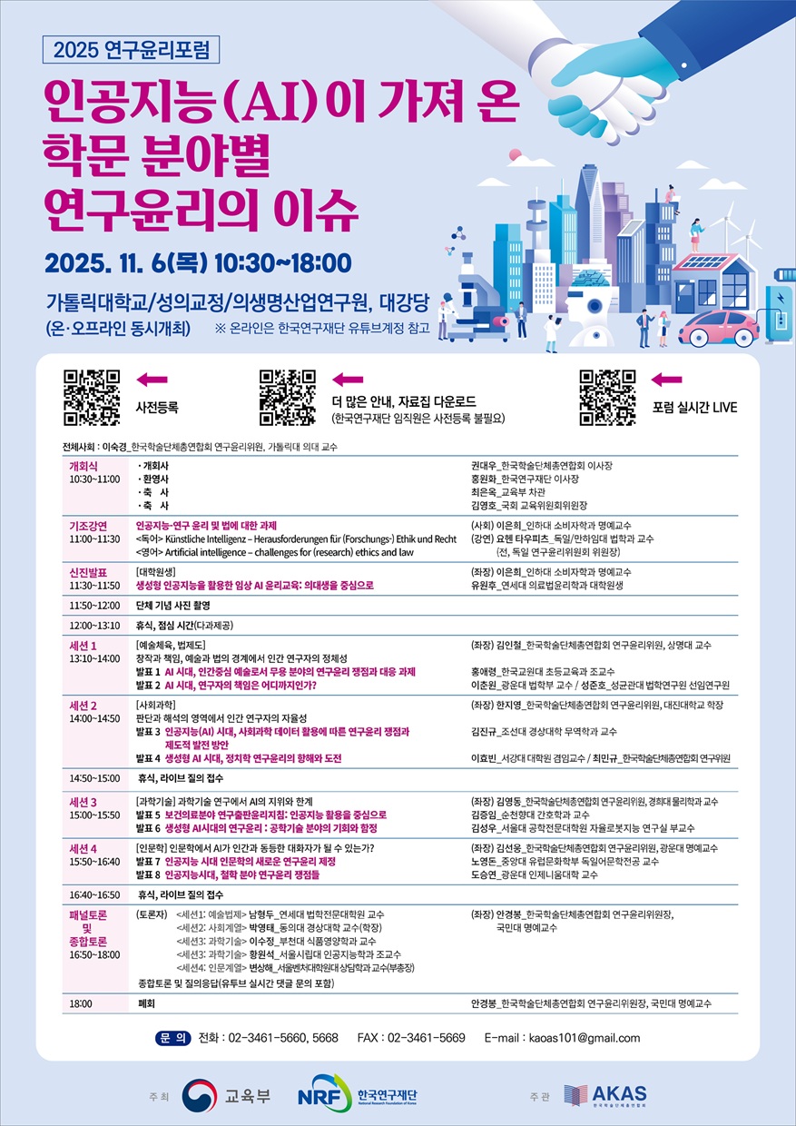 [한국연구재단] 2025년 연구윤리포럼 개최 안내(11.6.(목))