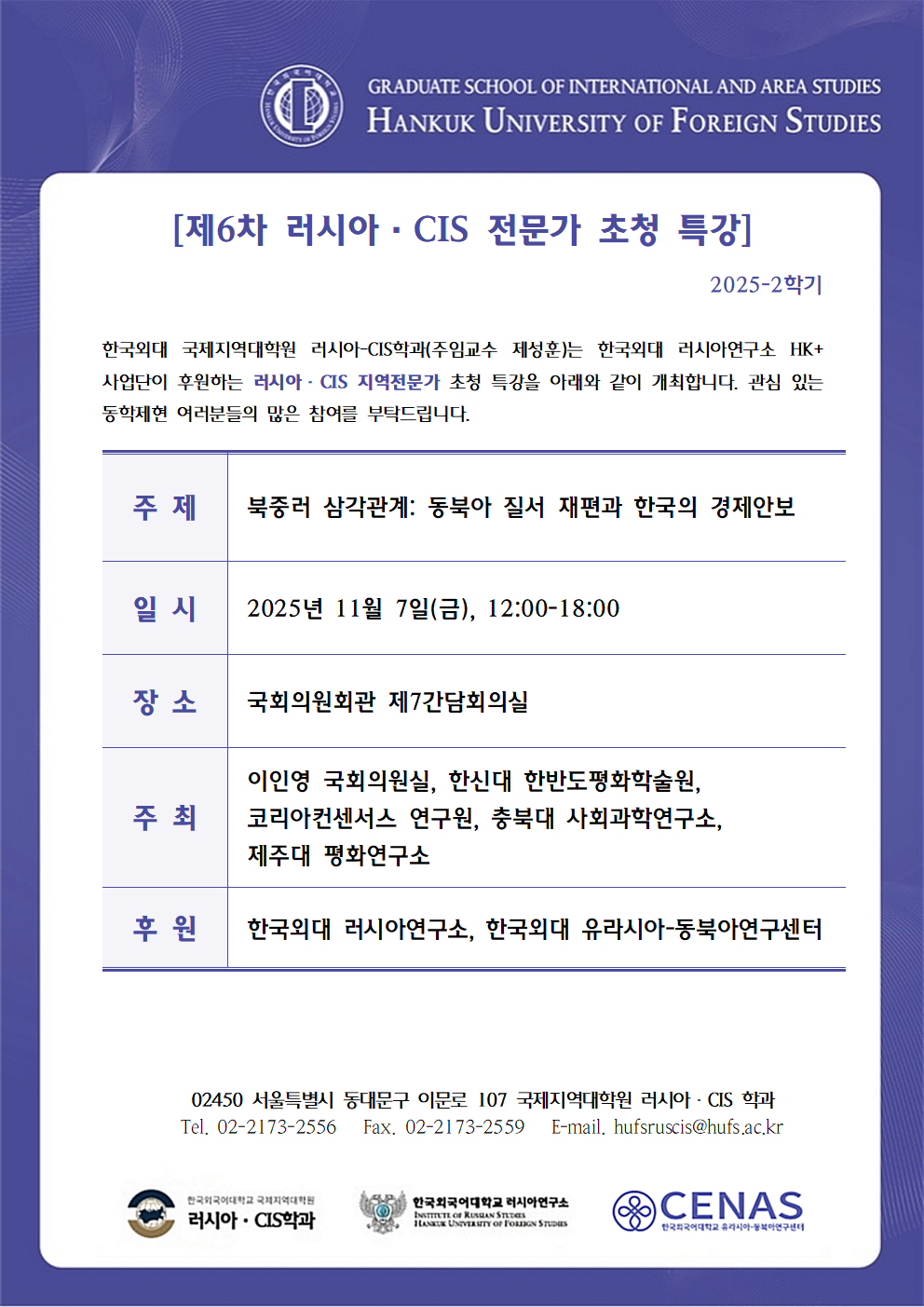 2025학년도 2학기 6차 특강 : 북중러 삼각관계: 동북아 질서 재편과 한국의 경제안보
