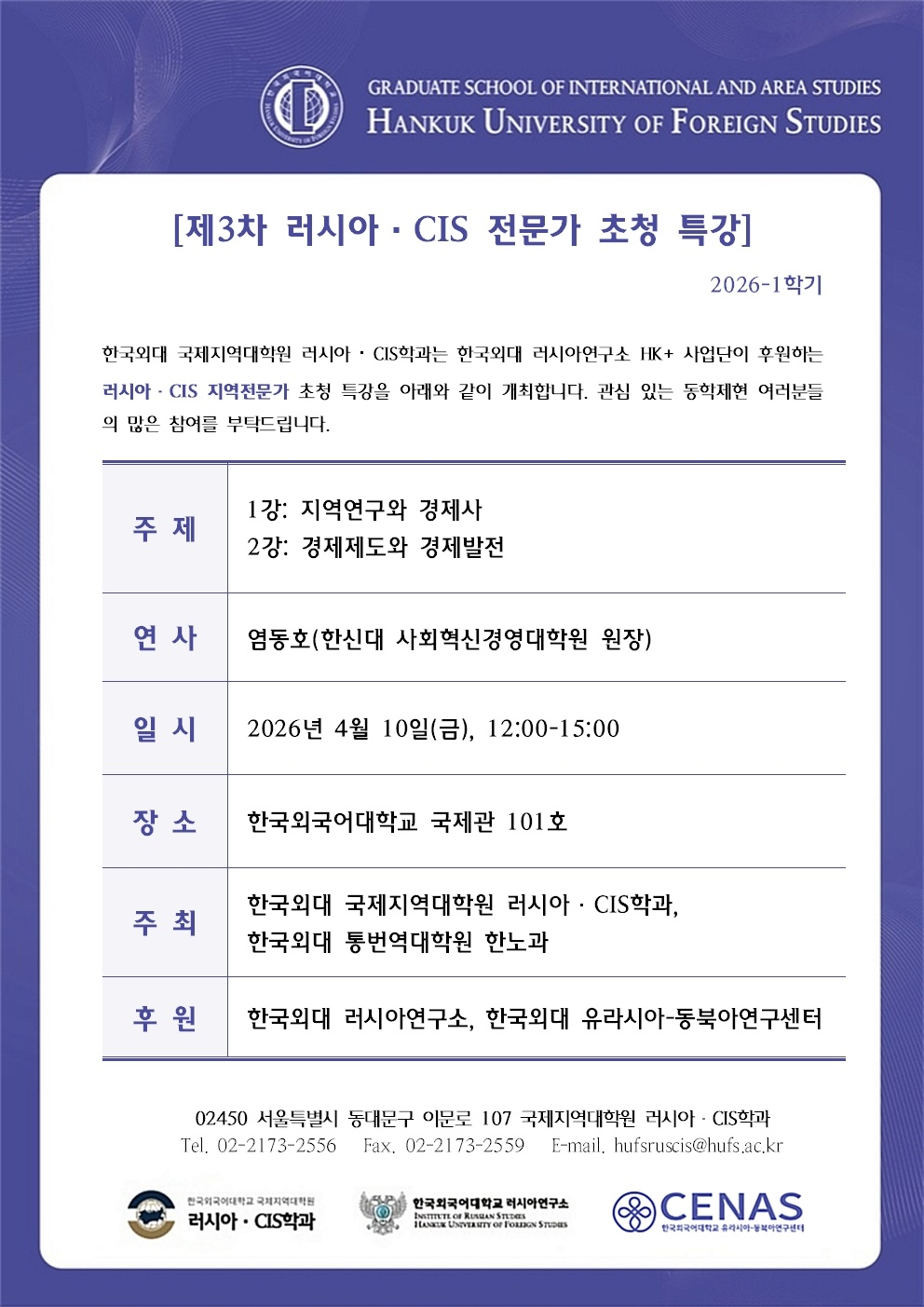2026학년도 1학기 2차 특강: 러시아의 지정학/푸틴의 대전략과 한반도