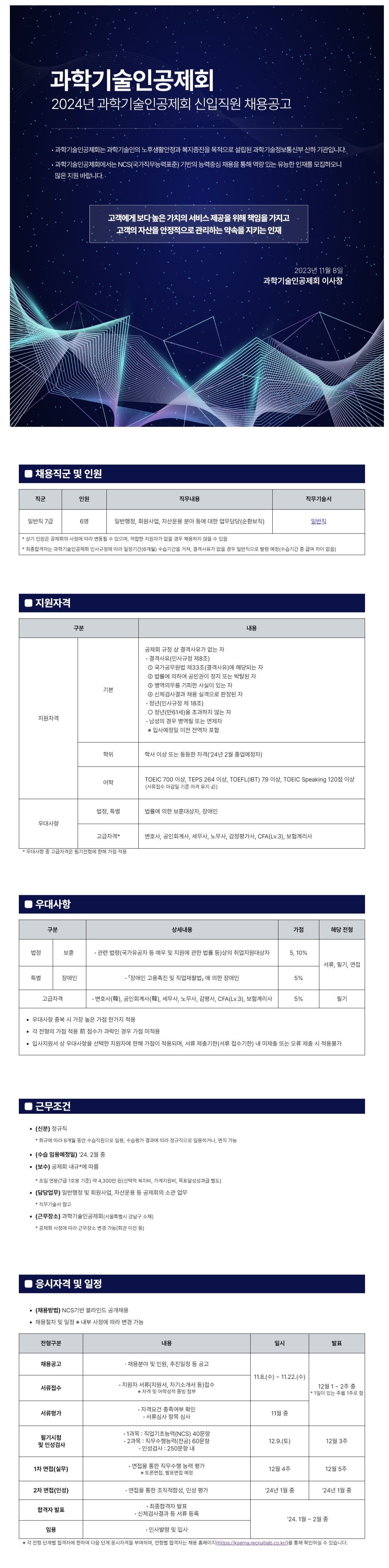 과학기술인공제회에서 2024년 신입 직원(정규직)을 채용하고자 합니다.