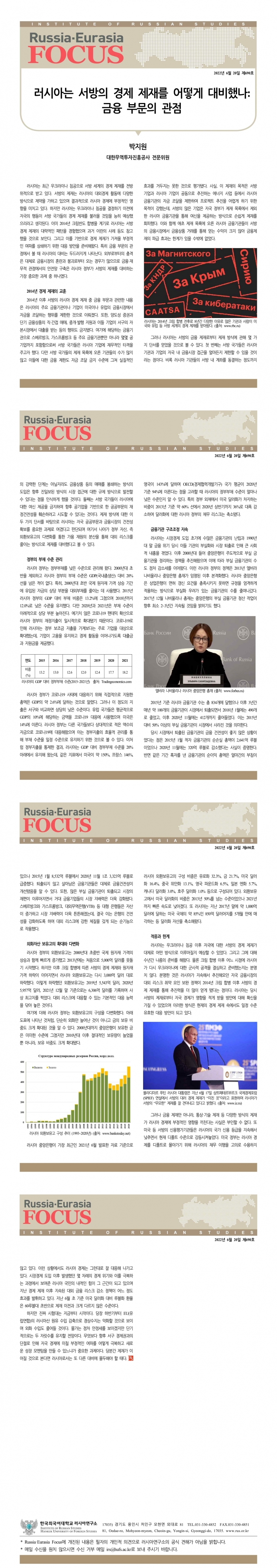 제690호 러시아는 서방의 경제 제재를 어떻게 대비했나: 금융 부문의 관점