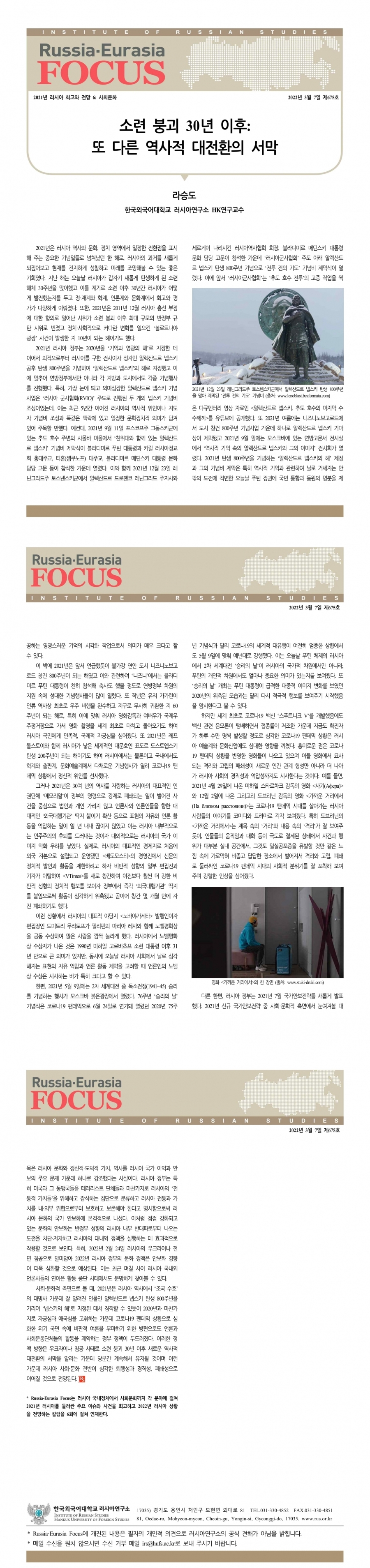 제675호 소련 붕괴 30년 이후: 또 다른 역사적 대전환의 서막