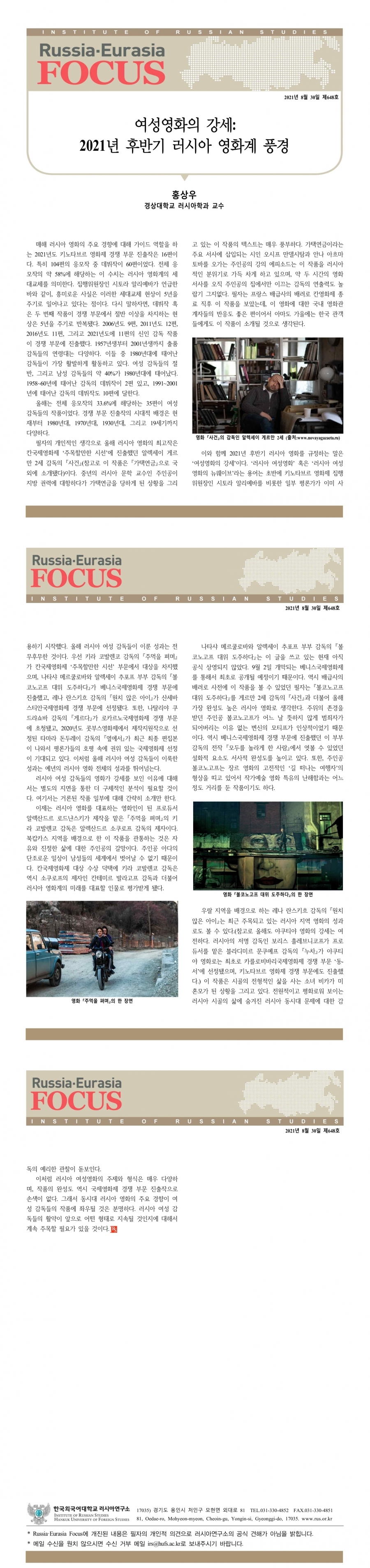 제648호 여성영화의 강세: 2021년 후반기 러시아 영화계 풍경