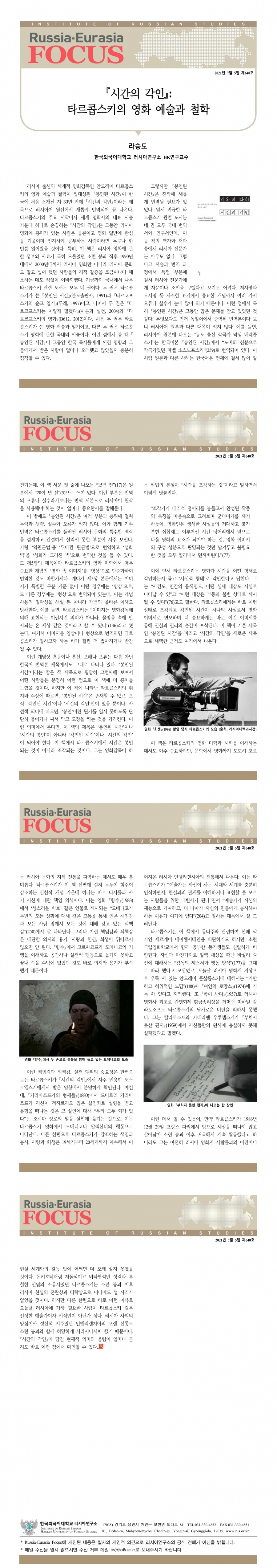 제640호 <시간의 각인>: 타르콥스키의 영화 예술과 철학