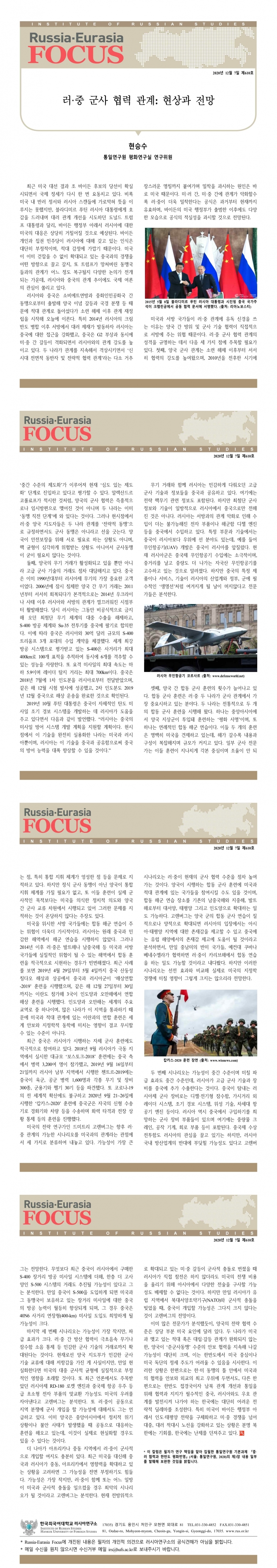 제610호 러·중 군사 협력 관계: 현상과 전망
