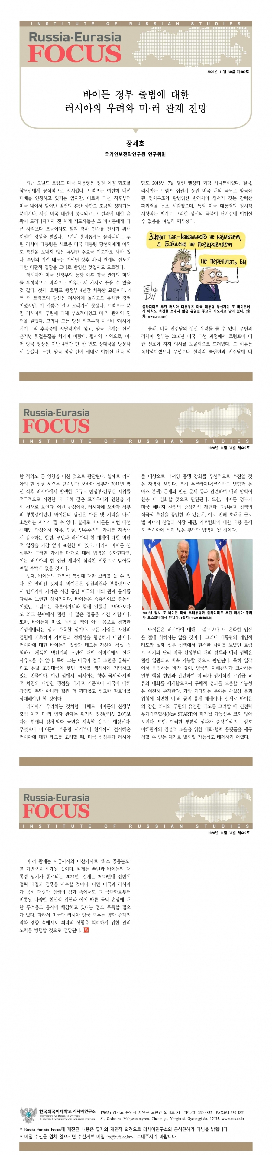 제609호 바이든 정부 출범에 대한 러시아의 우려와 미·러 관계 전망
