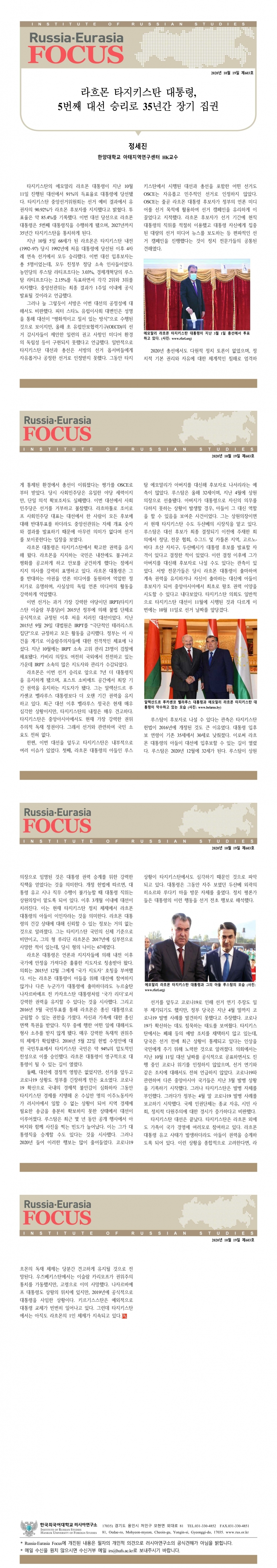 제603호 라흐몬 타지키스탄 대통령, 5번째 대선 승리로 35년간 장기 집권