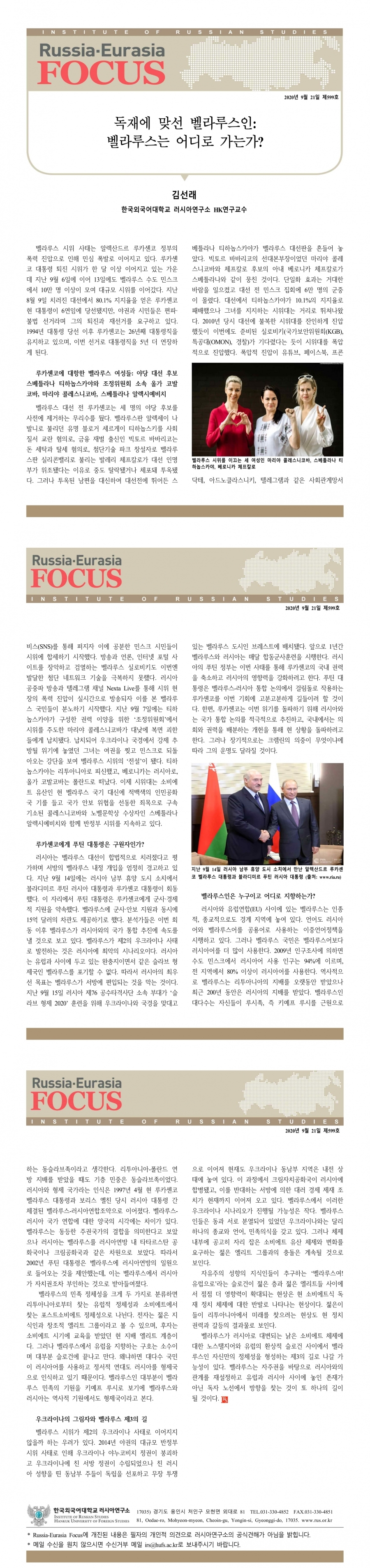 제599호 독재에 맞선 벨라루스인: 벨라루스는 어디로 가는가?