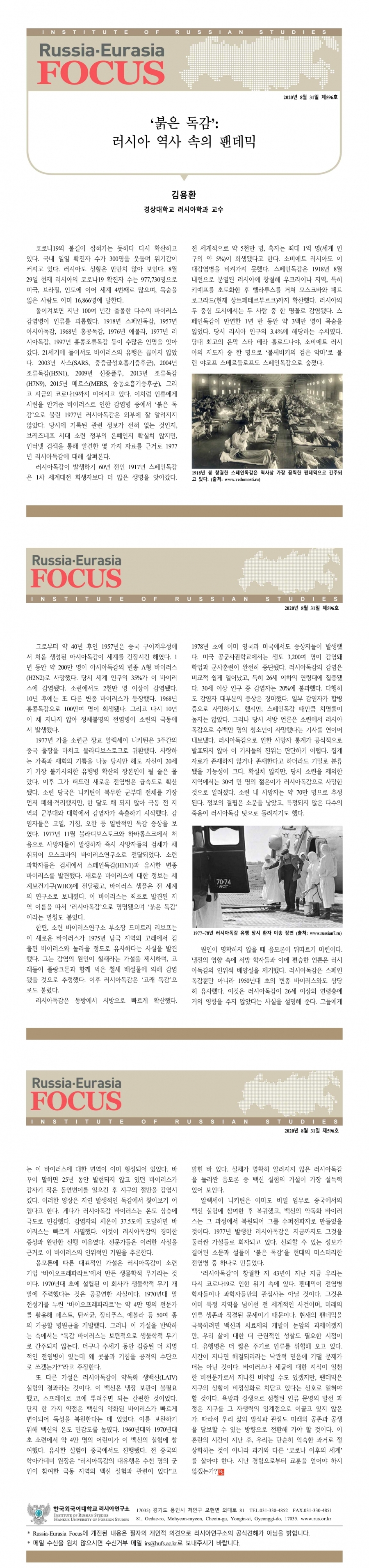 제596호 ‘붉은 독감’: 러시아 역사 속의 팬데믹