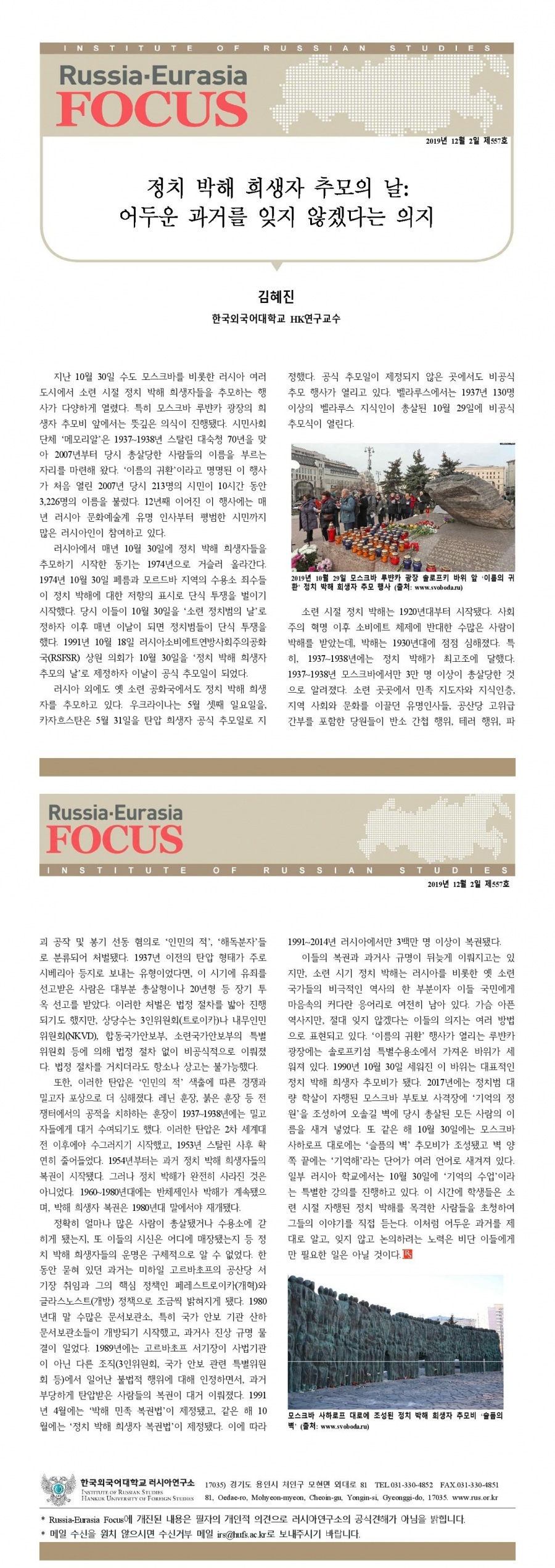 제557호 정치 박해 희생자 추모의 날: 어두운 과거를 잊지 않겠다는 의지