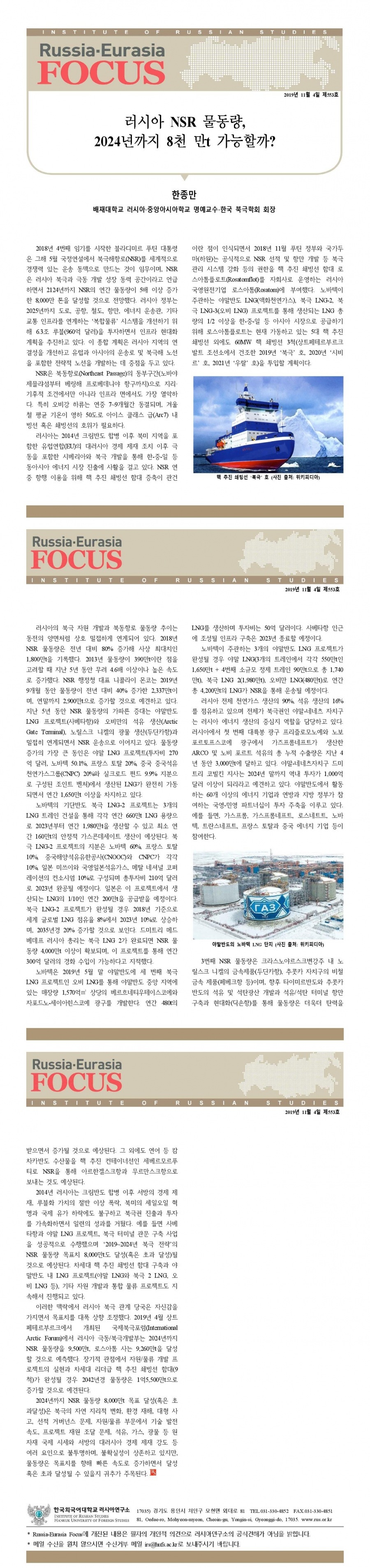 제554호 글로벌 안보 환경 변화와 러시아 북극 전략의 함의