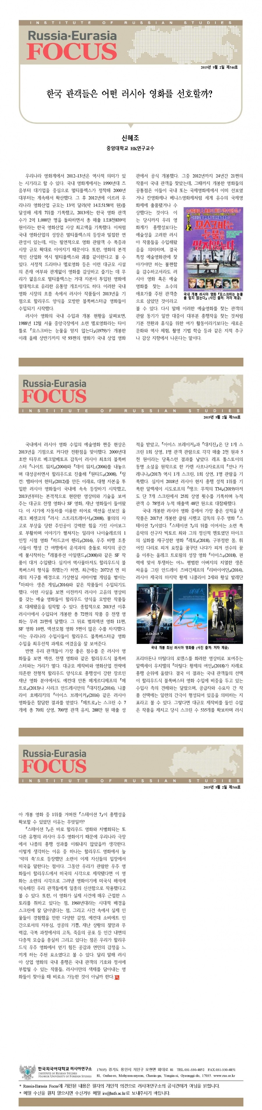 제544호 한국 관객들은 어떤 러시아 영화를 선호할까?