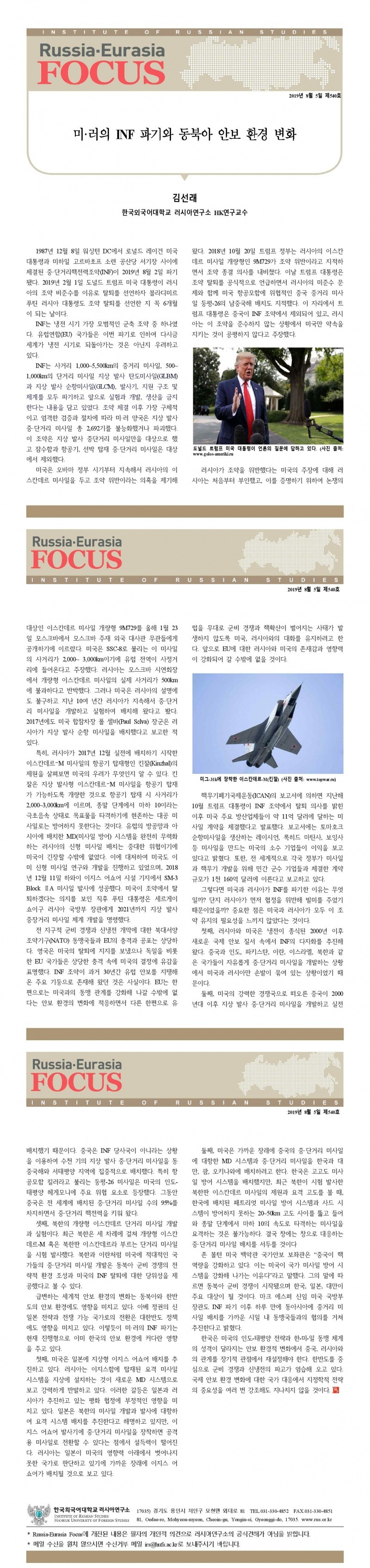 제540호 미·러의 INF 파기와 동북아 안보 환경 변화