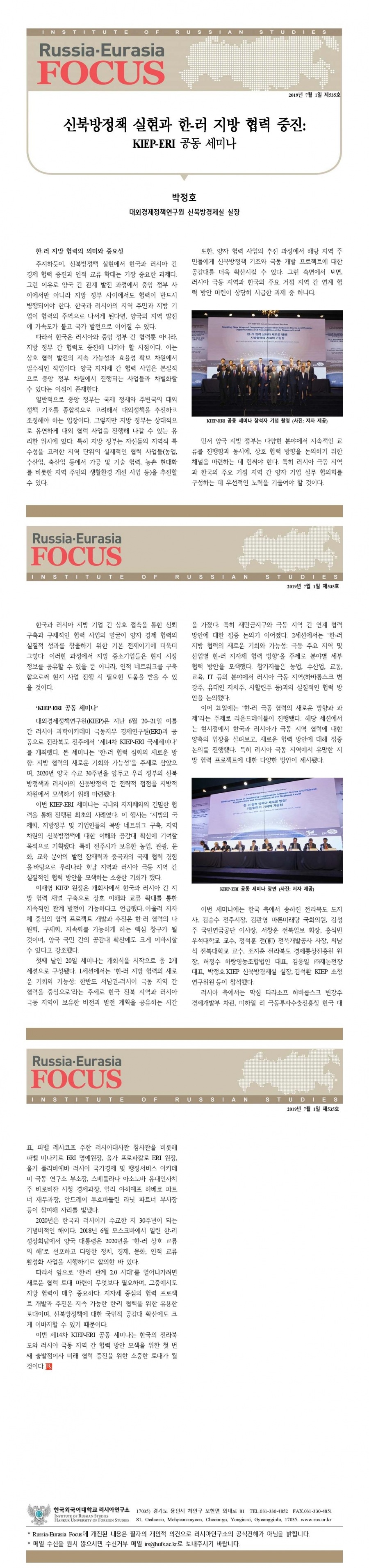 제535호 신북방정책 실현과 한-러 지방 협력 증진: KIEP-ERI 공동 세미나