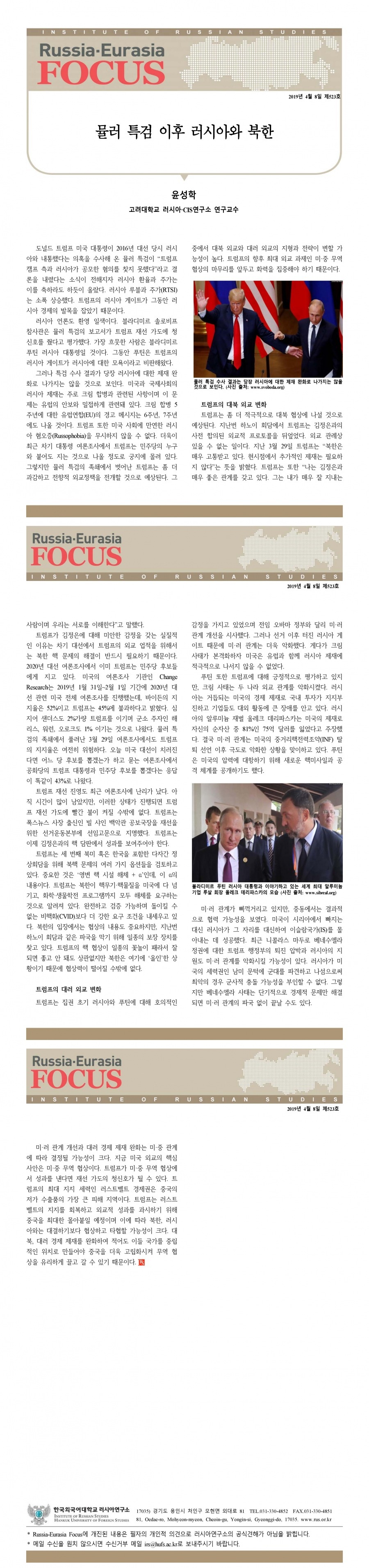 제523호 뮬러 특검 이후 러시아와 북한