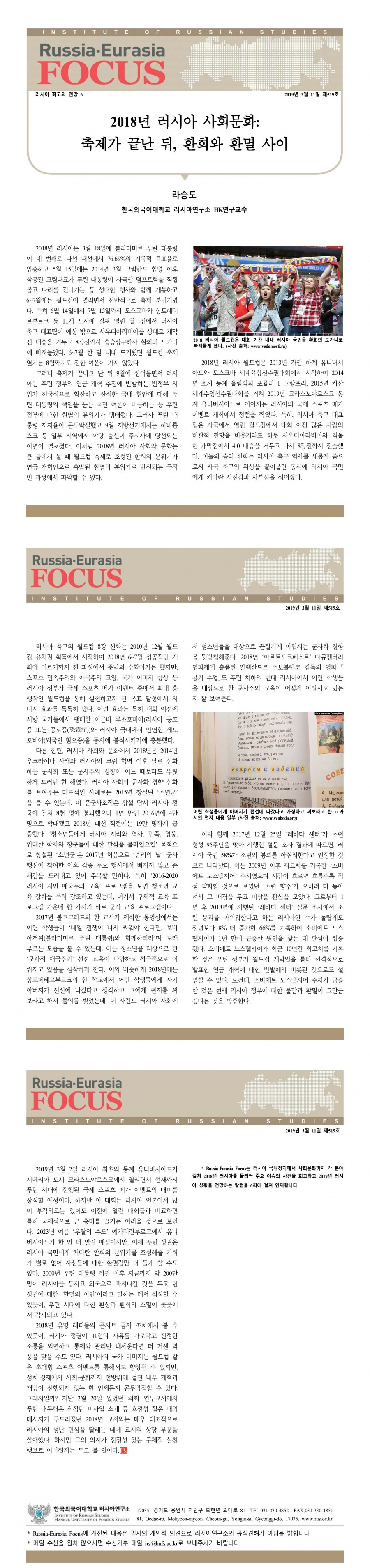 제519호 2018년 러시아 사회문화: 축제가 끝난 뒤, 환희와 환멸 사이