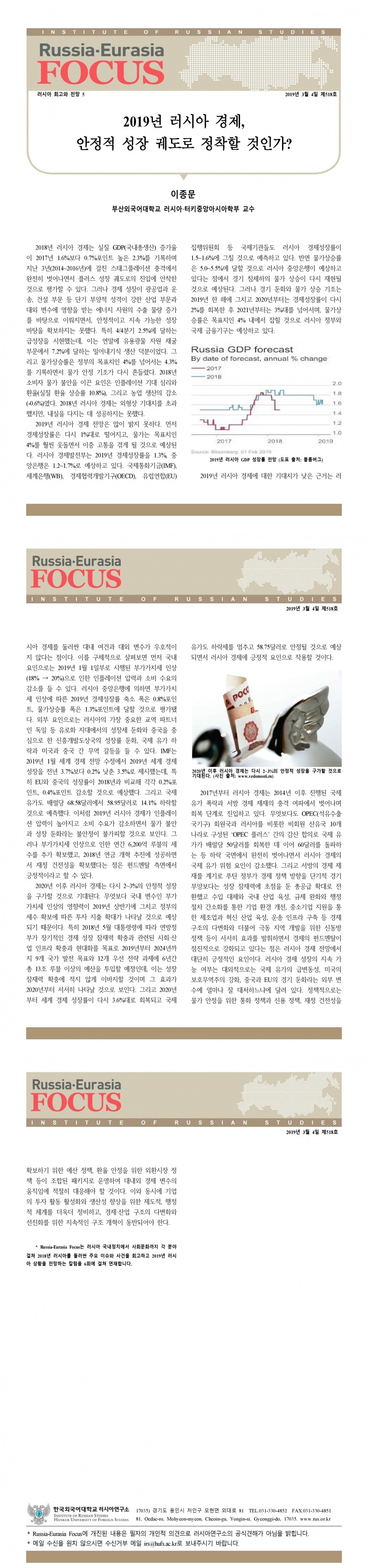 제518호 2019년 러시아 경제, 안정적 성장 궤도로 정착할 것인가?