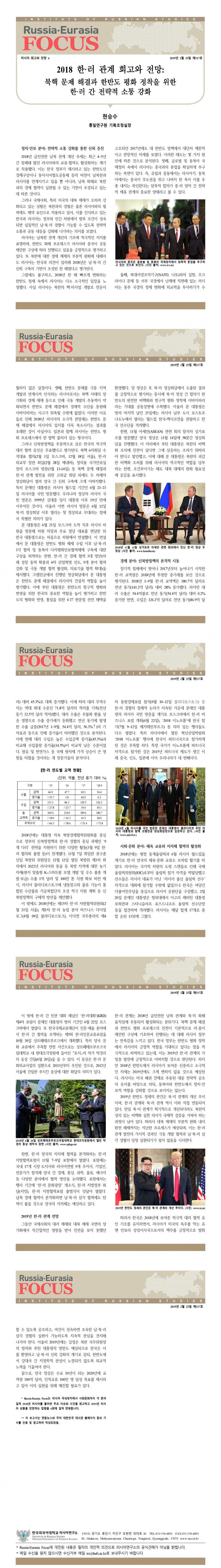 제517호 2018 한러 관계 회고와 전망: 북핵 문제 해결과 한반도 평화 정착을 위한 한러 간 전략적 소통 강화
